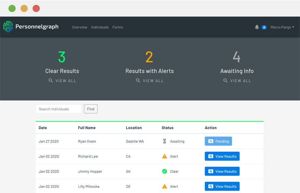 All of your documents, employee information, background check results, payments and notes are stored on the Personnelgraph platform that you can access from anywhere on any device with your Personnelgraph account.
